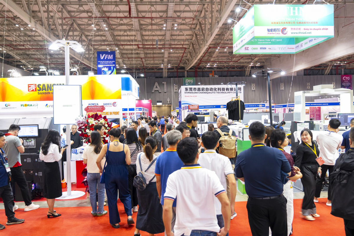 展會現(xiàn)場匯聚了來自中國、印度、馬來西亞、巴基斯坦、新加坡、韓國、泰國等國家和地區(qū)的400余家展商,設有超過750個展位。今年參展企業(yè)重點展示了服裝鞋業(yè)領(lǐng)域的自動化設備、數(shù)字化技術(shù)及最先進的機械技術(shù),致力于推動工廠數(shù)字化,促進越南紡織業(yè)數(shù)字化轉(zhuǎn)型,并滿足當前市場對多樣化面料的需求。