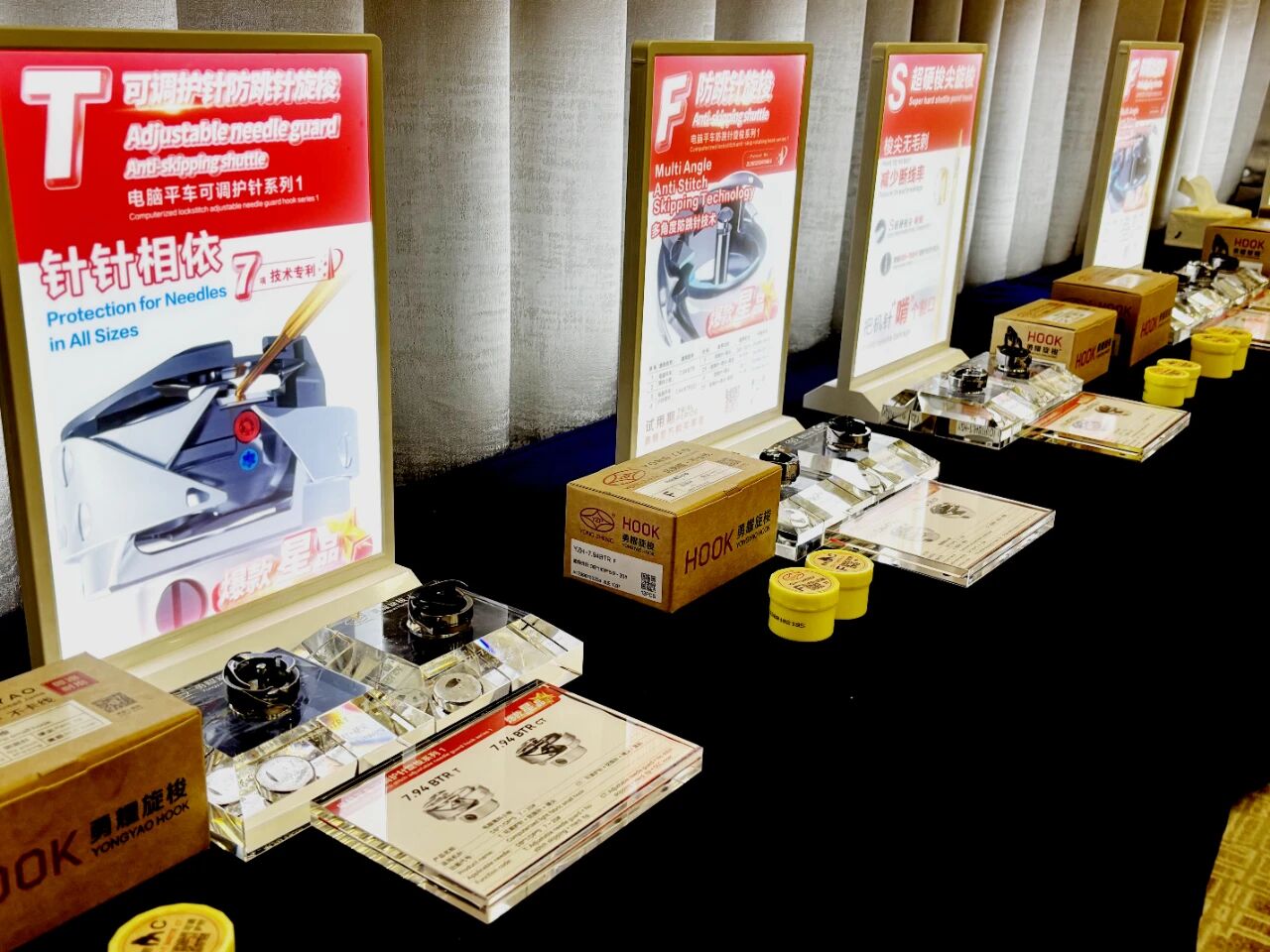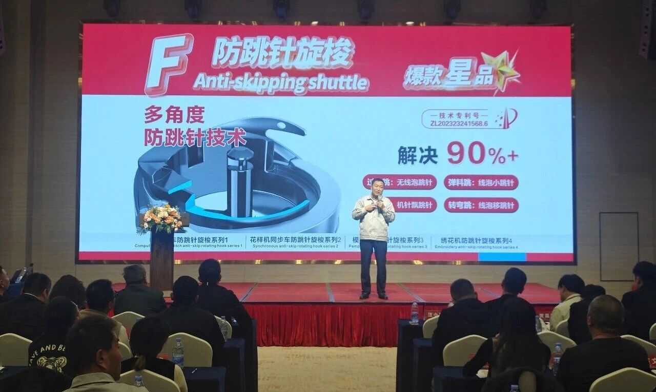本次發(fā)布會重磅推出的勇耀防跳針旋梭,以F防跳針功能為核心,延伸出電腦平車系列、花樣機(jī)同步車系列、模板機(jī)系列三大產(chǎn)品矩陣,實現(xiàn)對主流縫紉設(shè)備的全場景適配。作為勇耀的爆款“星”品,D針位功能、F防跳針功能、T可調(diào)護(hù)針功能的產(chǎn)品,形成了電腦平車系列化、花樣機(jī)同步車系列化、模板機(jī)系列化。通過專利結(jié)構(gòu)設(shè)計,D系列旋梭將有效線道空間提升0.6 毫米,完美兼容機(jī)針從2.5 毫米至3.3 毫米的大范圍調(diào)節(jié),從根源上解決了因調(diào)試針桿導(dǎo)致的故障循環(huán)。實測數(shù)據(jù)顯示,F(xiàn)防跳針系列旋梭跳針概率遠(yuǎn)低于市場主流產(chǎn)品,部分場景可實現(xiàn)“零跳針”,目前已投放市場的萬余枚 F 系列旋梭更是創(chuàng)下“零客訴”的行業(yè)佳績。 同時,全系列防跳針旋梭均標(biāo)配S 硬尖功能,采用獨(dú)特的激光二次淬火技術(shù),使梭尖表面硬度穩(wěn)定達(dá)到HV800 度(相當(dāng)于機(jī)針硬度),大幅提升了產(chǎn)品的耐磨性與使用壽命,徹底改變了硬尖功能此前作為選配的行業(yè)現(xiàn)狀。