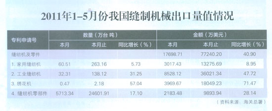 > 2011年1-5我國縫制機(jī)械出口量值情況