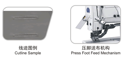 適用于各種針織、棉紡、化纖等織物的鈕孔縫鎖,薄料,中厚料均宜。