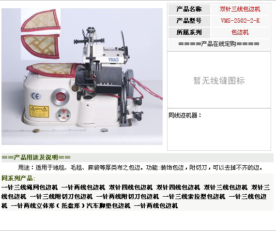 熱門(mén)產(chǎn)品: 威瑪士(VMAS)VMS-VF5/9700/9800 電腦平縫機(jī) 電子平車(chē)   威瑪士(VMAS) VMS-580/559 電腦圓頭鎖眼機(jī) 電腦鳳眼車(chē)   威瑪士(VMAS) VMS-9820 電子鳳眼車(chē) 電腦圓頭鎖眼車(chē)   兄弟 RH-9820-02 電腦控制圓頭鎖眼機(jī)   威瑪士(VMAS) VMS-VF2/VF3/8800 電腦平縫機(jī)