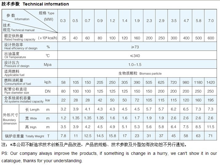 The YLL(YGL) Organic heat carrier boiler is packaged forced circulation vertical burning biomass boilers. The heating surface of ontology is compact structure, heating surface is composed of inside and outside close circular tube. Inside dish tube for radiation heating surface, outside dish tube and the outer surface of the tube inside dish convection heating surface. The boiler is composed of upper body and lower combustion chamber, field assembling. The fuel in the combustion chamber full combustion, after the most heat is absorbed by the radiation heating surface, the high temperature flue gas going to the convection heating surface and change the heat. After the flue gas from boiler air preheater of the heating boiler combustion air as needed, dust-collecting can send the waste gas to the atmosphere.Various types of emissions are below the national standard(GB13271-2001), This product is the alternative fuel, gas, electricity, coal fired steam boiler, the best products. Biomass boiler operation cost is low, fuel, gas, electric heating boiler families save 40% - 40%, save 5%-10% running cost than coal, the heat energy is a kind of high efficiency and energy saving environmental protection equipment.