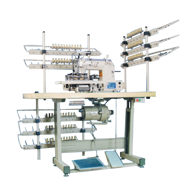 此機(jī)上線采用普通線,下線采用松緊線。運(yùn)用多款式樣的凸輪花盤,再與裝飾互相搭配,創(chuàng)造出種類繁多且吸引人的花樣圖案。適用于女裙打褶,連衣裙等腰邊松緊打褶,對于各種童裝、床上用品的裝飾縫,亦可選擇配置不同的花盤,縫出想要的圖案。
