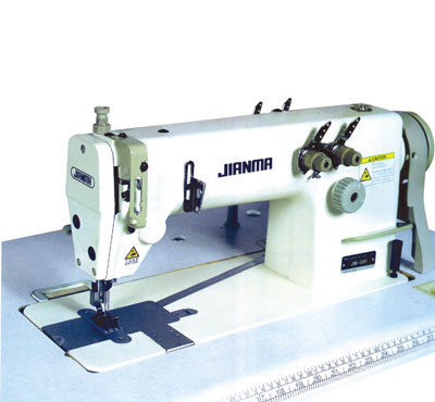 本機(jī)是一臺(tái)可縫制牛仔褲,便褲,裙子等的棟縫,口袋的卷縫,運(yùn)動(dòng)衫的布條裝飾等多種工序的縫紉機(jī)。彎針機(jī)構(gòu)采用的是JIANMA獨(dú)有的傾斜彎曲一體型的裝置,能發(fā)揮優(yōu)越的耐久性。加固縫(密集縫)是與平縫機(jī)相同都可通過(guò)返縫拉桿進(jìn)行操作,可真正的防止脫線。