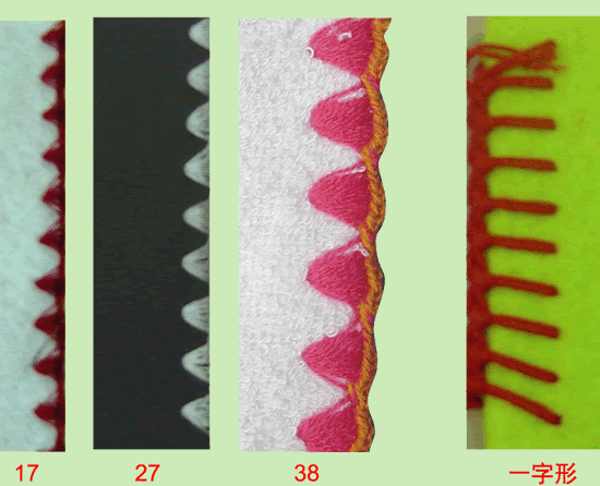 JG-38可依不同的線。布料與針距搭配出多種多樣的貝型花邊。及由轉(zhuǎn)移動(dòng)針數(shù)調(diào)整桿便可以變換3種不同的針織樣式。共有1針。4針,或8針之貝殼樣式。 JG-38 is made in various specific styles for producing shell stitch edge finish ogf different sizes, and to produce any one the three different combinations of finishes which include 1or 4 or 8 stitches. |