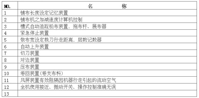 本機(jī)特點(diǎn): 1.伺服控制:采用先進(jìn)的伺服控制系統(tǒng),讓機(jī)器可以準(zhǔn)確無誤地執(zhí)行計(jì)算機(jī)指令。 2. 液晶觸控:以人機(jī)對話方式進(jìn)行各種功能設(shè)置,讓全機(jī)實(shí)現(xiàn)人性化智能操作。 3. 自動對邊:采用紅外線自動對邊,精確對齊使兩邊布料更加節(jié)省。 4.開幅調(diào)節(jié):通過簡單操作,即可變換針織與梭織鋪布,8檔位簡單調(diào)節(jié),即可調(diào)節(jié)橫向張力,真正實(shí)現(xiàn)針織面料無皺紋鋪布。 5.張力調(diào)節(jié):通過布斗裝置及光電開關(guān)自動調(diào)節(jié)布料縱向張力 6.數(shù)據(jù)預(yù)設(shè):可同時預(yù)設(shè)多種拉布長度和層數(shù),讓操作更加智能化。 7.智能裁斷:智能裁斷裝置可根據(jù)門幅設(shè)定切刀裁斷寬度,提高效率。 8.數(shù)據(jù)記憶:即使緊急或意外斷電,數(shù)據(jù)也能被保存。 9.靜音裁切:機(jī)頭采用進(jìn)口靜音滑塊,讓運(yùn)行更平穩(wěn)更順暢,通過簡單拆裝即可雙向鋪布。 智能鋪布機(jī)標(biāo)準(zhǔn)配置: