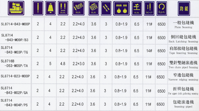 熱門產(chǎn)品: 手臂型兩面裝飾四針六線雙切繃縫機(SL-700)   三合一多功能平床型高速三針綳縫機(FG-666-FQ)   平床型高速三針綳縫機(FG-666-EST)   雙面飾筒型三針綳縫機(FW-777)   縱筒型三針五線雙面飾綳縫機(FW-777-603)