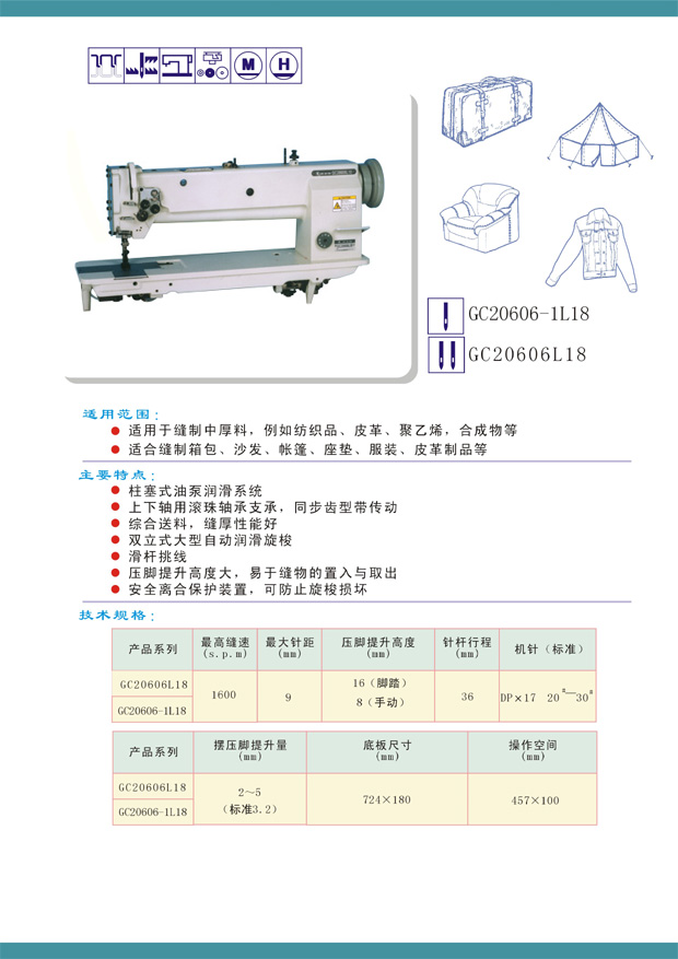 GC20606-1L18單針長(zhǎng)臂綜合送料中厚料平縫機(jī)