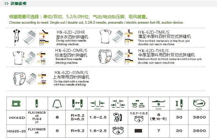 熱門產(chǎn)品: HX-62D 四針六線拼縫機(jī)   HX-9800-D3 直驅(qū)機(jī)電一體高速平縫機(jī)系列   HX-7200 高速電腦直驅(qū)(微油)平縫機(jī)   HX-9000D 高速電腦直驅(qū)(有油)平縫機(jī)系列   HX-927/928 腕二針三針埋夾機(jī)