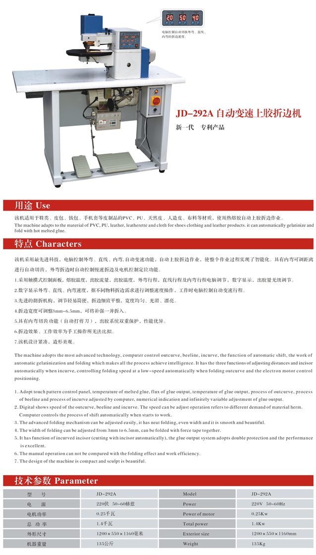 JD-292A自動變速上膠折邊機
