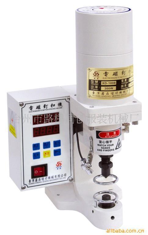 電磁釘扣機(jī)具有:高安全性能,無極調(diào)壓,節(jié)能,無燥音,紅外線定位等優(yōu)點,適用于各類服裝、針織成衣、牛仔類服裝、鞋帽、皮革、塑料、帆布制品上裝釘扣各種金屬四合扣、工藝扣。 主要功能:本機(jī)為釘鉚各種規(guī)格回合扣的理想沒備,取代手工釘鉚的繁重勞動,速度快、工效高、外觀美、經(jīng)該釘鉚的四合扣翻鉚均勻、鉚接牢固,該機(jī)采用雙保險安全裝置,使用、維修方便,性能穩(wěn)定,并可根據(jù)客戶要求,配置各種專用模具。Electromagnetic Button Fixer Model 1808 features high safety performance,steplessure adjrstment,energy,no noise,infrared positioning. is suitable for all kinds of clothes, knitting slopwork, clothes like cowboy, shoes and cap, leather, plastic and canvas products to attach all kinds of metal fastener and art fastener.