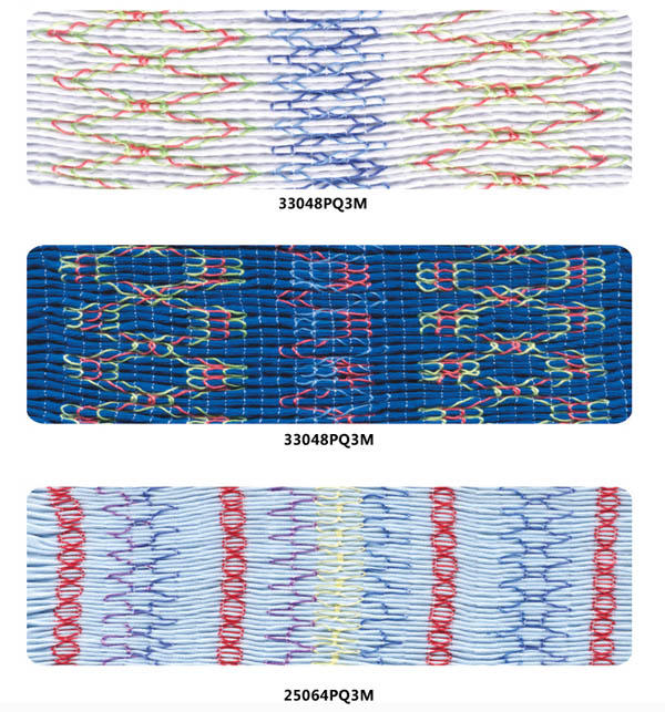 適用於女裝(上衣、裙子)的腰圍,胸圍的鬆緊打褶、打攬?梢赃x擇不同的裝飾線圖案,?椥勻岷停?€跡柔美。 Featrues: It is suitable for shirring and smocking of lady’s clothes(inchuding drs-sses and shirts)on waist and bust.Various Ornamental stitch patt-erns can be chosen..Beautiful and flexible stitches.