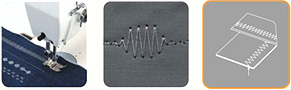 | 技術(shù)特色: 可在薄、中、厚料上做直縫、曲縫、繡花、拼縫、套結(jié)縫、包邊縫、拉鏈縫、包?p、花紋縫隙等,能形成絢麗多彩的裝飾圖案。 |