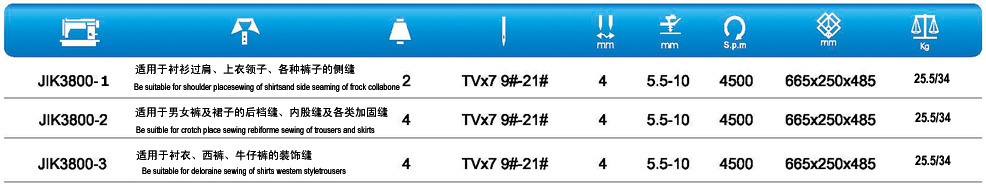 本機(jī)采用連桿式送料機(jī)構(gòu),針桿挑線,彎針勾線,形成雙線鏈?zhǔn)骄跡。線跡牢固且富有彈性,適用于服裝內(nèi)衣,床上用品及薄形包袋和皮革制品的搭接縫、裝飾縫,針間距有五種規(guī)格可供選擇。 JIK3800-2為雙針縱列鏈?zhǔn)狡娇p機(jī);JIK3500-3為三針縱列鏈?zhǔn)狡娇p機(jī)。