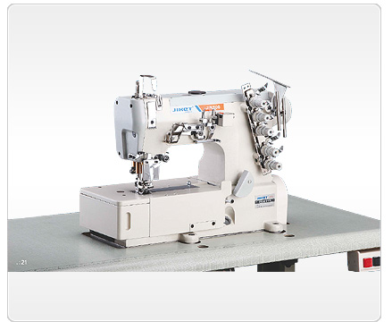 本機型為環(huán)境平車之基本機種,可以裝配多種輔助件進行多功能之縫合,采用平臺式縫紉工作臺,多針刺料,彎針勾線,差動送料形成雙針或三針繃線跡?p紉速度達到6000針/分,縫紉性能穩(wěn)定,力矩輕,噪音低,噪音低,振動小,運轉(zhuǎn)平穩(wěn)柔和。為了滿足具有彈性的針織縫料要求,采用差動送料的機構(gòu),使縫紉后的線跡與縫料平整,有彈性,手感舒適。適合內(nèi)衣褲、運動衫接縫或下擺車縫。