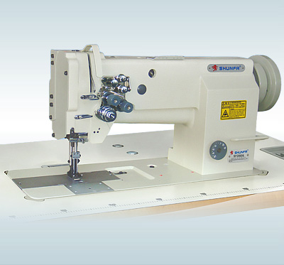 SF20606 雙針平縫機(jī)采用雙直針、雙立式大型自動(dòng)加油旋梭勾線,滑竿挑線、構(gòu)成而行雙線鎖式線跡。上下軸用滾珠軸承支承,同步齒形帶傳動(dòng);柱塞式油泵潤滑系統(tǒng),采用了松料牙、針桿、壓腳等互相諧和送料的綜合性送料機(jī)構(gòu),故即使線跡較粗者及較長的縫料的縫制,也能正確自如地進(jìn)行。