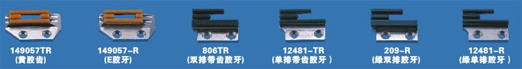 149057TR(黃膠齒)/149057-R(E牙齒)/806TR(雙排帶齒膠牙)/12481-TR(單排帶齒膠牙)/209-R(綠雙排膠牙)/12481-R(綠單排膠牙)