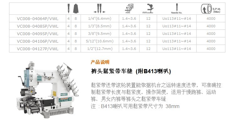 VC008-04064P/VWL,VC008-04085P/VWL,VC008-04095P/VWL,VC008-04106P/VWL,VC008-04127P/VWL 褲頭鬆緊帶車縫 (附B413喇叭)