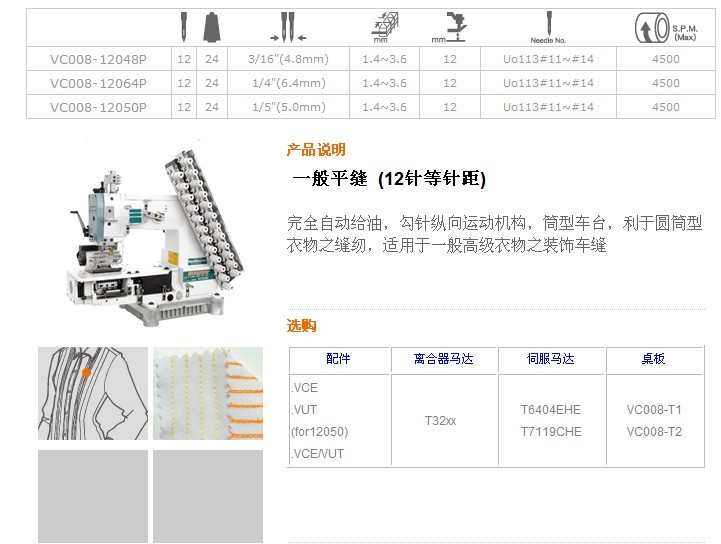 VC008-12048P,VC008-12064P,VC008-12050P 一般平縫 (12針等針距)