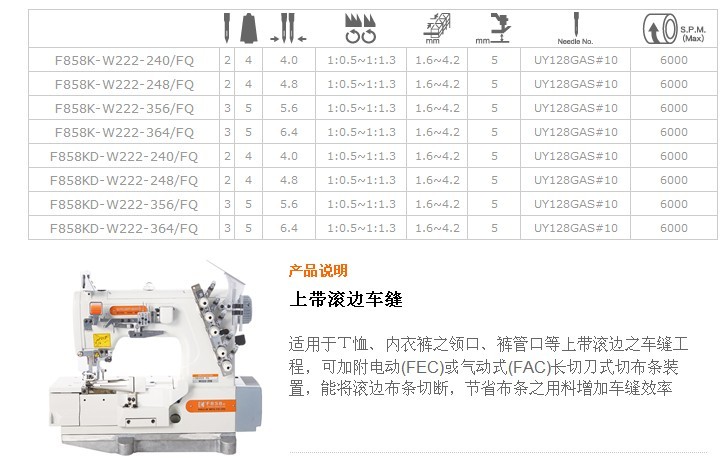 F858K-W222,F858KD-W222 上帶滾邊車縫