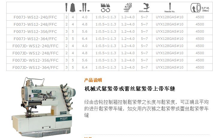F007J-W512,F(xiàn)007JD-W512 機(jī)械式鬆緊帶或蕾絲鬆緊帶上帶車縫