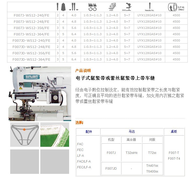 F007J-W512,F(xiàn)007JD-W512 電子式鬆緊帶或蕾絲鬆緊帶上帶車(chē)縫
