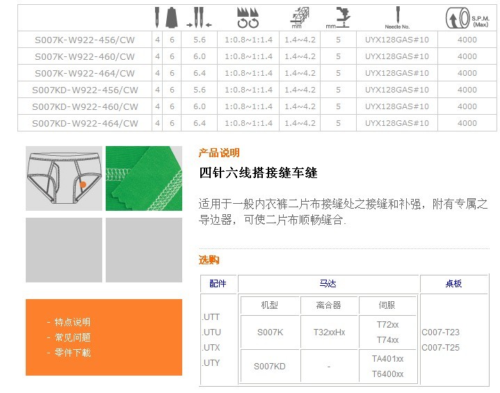 S007K-W922,S007KD-W922 四針六線搭接縫車縫