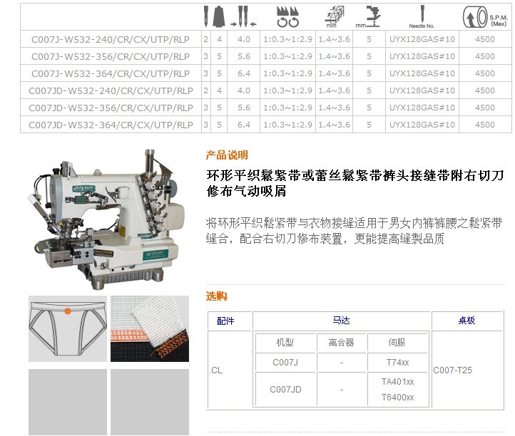 C007J-W532,C007JD-W532 環(huán)形平織鬆緊帶或蕾絲鬆緊帶褲頭接縫帶附右切刀修布氣動吸屑