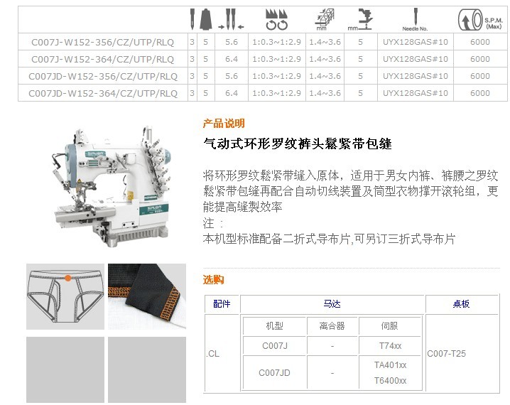 C007J-W152,C007JD-W152 氣動(dòng)式環(huán)形羅紋褲頭鬆緊帶包縫