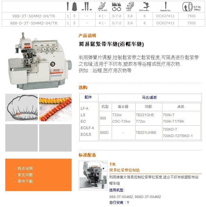 988-3T-504M2-04/TR,988-D-3T-504M2-04/TR 簡(jiǎn)易鬆緊帶車(chē)縫(浴帽車(chē)縫)