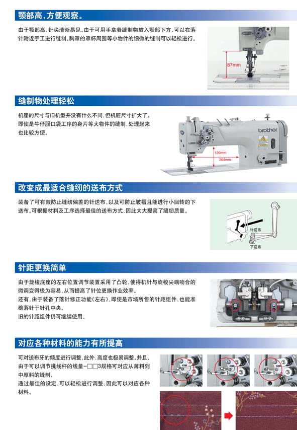 · 穩(wěn)定的自動(dòng)切線功能和大旋梭提高了生產(chǎn)效率。