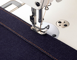 ·是一臺裝備有雙倍旋梭的,最適合厚料以及牛仔褲縫制的平縫機。