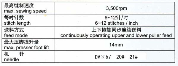 另外該機使用了自動抬壓腳和氣動拉筒等裝置,使其操作性能更佳,大大減輕工人的勞動強度,從而提高工作效率。