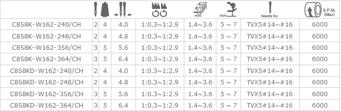 本機(jī)型為雙面飾厚布用高行程環(huán)縫筒車機(jī)型.適合較厚布料車縫,可裝配附件進(jìn)行多種功能車縫 例如 : 運(yùn)動(dòng)衫接縫&下擺車縫(附可調(diào)式下擺車縫組)