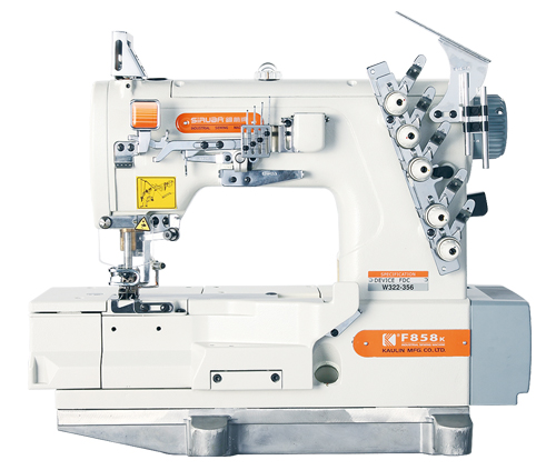 適宜中厚至厚布料經(jīng)四線拷克車縫后再包縫,用于運(yùn)動(dòng)服、休閒服等包飾縫,在針板前端有導(dǎo)引器能把直縫的針跡,均勻分開增加車縫的美觀