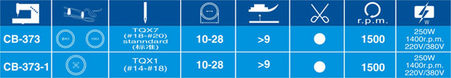 CB-373釘扣機(jī),主要用于二孔或四孔的平鈕扣縫釘,若加附具,可縫釘帶柄及其他鈕扣,適用于輕薄中厚面料的釘扣。