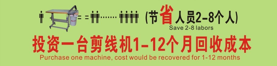 加裝于各種工作時會產(chǎn)生粉塵及垃圾的設(shè)備,如包縫車、坎車、帶刀平車、織襪機等。