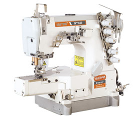 本機(jī)為ST600系列基本型,兩面裝飾上下差動(dòng)輸送三針小方頭式繃縫機(jī),基本型,繃縫與折縫于一體,大大提高了工作效率,擴(kuò)大了用途范圍,并且,采用獨(dú)立驅(qū)動(dòng)上下差動(dòng)輸送機(jī)構(gòu),上送布牙更準(zhǔn)確地輸送布料,防止了縫紉錯(cuò)位。