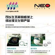 如田島大型機(jī)器設(shè)備一樣,可在帽子,高爾夫球衫,夾克,嬰兒帽,手袋,圍裙等物件上縫繡多達(dá)15種顏色。加上NEO配上田島革命性設(shè)計(jì)的圓筒框,對褲腳口,口袋,襪子等這些較難縫繡的位置也都輕易解決。