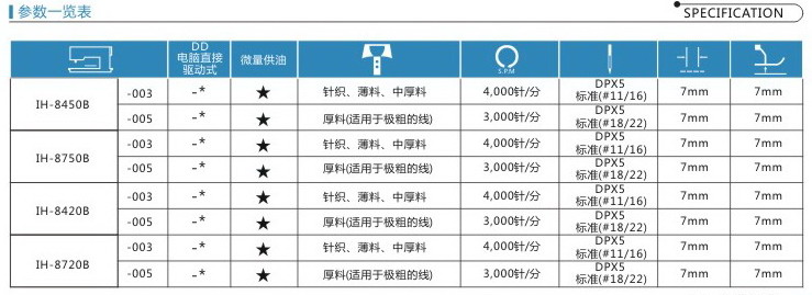 產(chǎn)品特點:低噪音、低振動,機腔空間大,操作舒適,整體各項性能指標(biāo)達(dá)到世界領(lǐng)先技術(shù)水平,是服裝生產(chǎn)企業(yè)首選的縫制設(shè)備;適用于縫制襯衫、內(nèi)衣、制服、牛仔衣、大衣等,線跡整齊美觀。