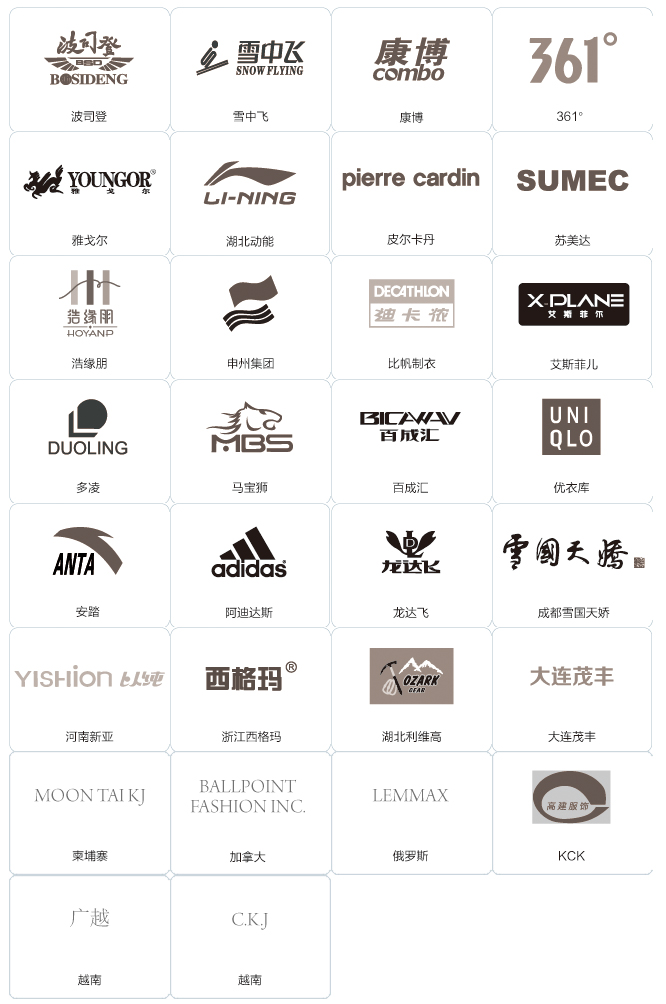 國(guó)內(nèi)外知名品牌客戶和加工廠如下: