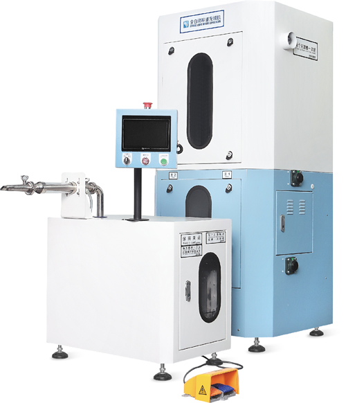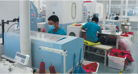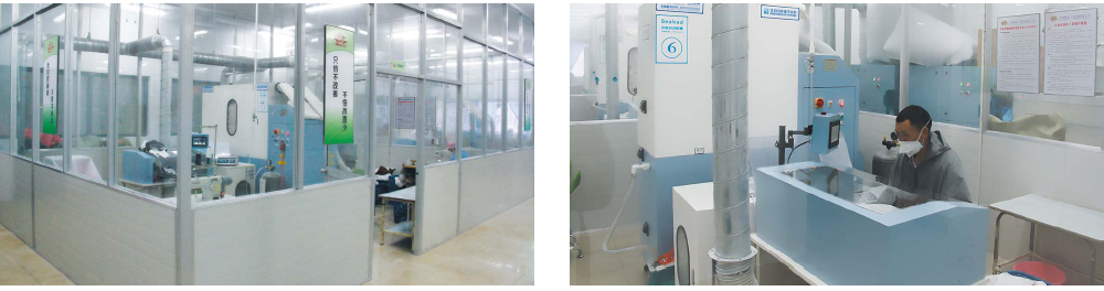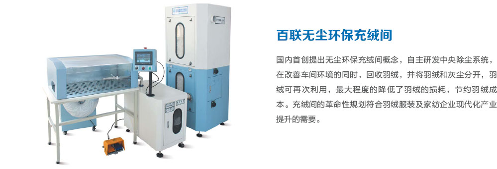 利用高壓氣體吸取羽絨,通過全自動(dòng)稱重裝置,將設(shè)定克重的羽絨充入裁片。