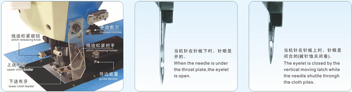 除高級(jí)珠邊線外,還可使用質(zhì)量較好的普通縫紉線,減低用線成本。采用鉤針設(shè)計(jì),可以輕松方便地將縫線套入鉤針。