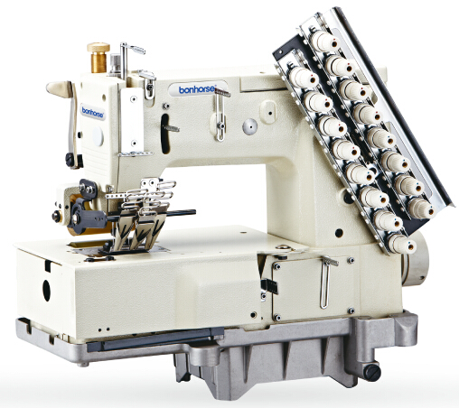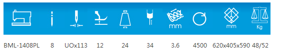 BML-1400系列為平臺(tái)式多針機(jī),上松緊、門(mén)襟滾條、上腰、裝飾縫等。適用于內(nèi)衣、運(yùn)動(dòng)服、女裝、工作服、室內(nèi)裝飾品等。 型號(hào): MR:打纜裝置 WB:上腰裝置 PSF:門(mén)襟裝置 PSM:裝飾裝置 PSSM:打纜和裝飾裝置 PL:滾條裝置 ET:下線為松緊線專(zhuān)用 附加裝置:MDH:前松緊帶送布調(diào)整裝置