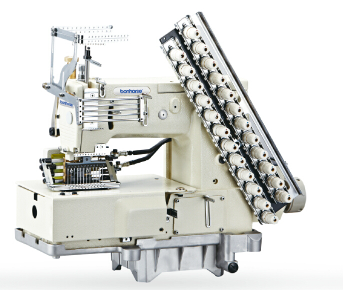 可以運用18款式花樣的凸輪花盤,再與裝飾線互相搭配,創(chuàng)造出種類繁多且吸引人的花樣圖案。擺動板的設(shè)計,采用雙排三層方式的特殊設(shè)計。可以同時使用二塊花盤,即交替的外面一塊花盤,用來擺動下面兩層擺動板;而另一塊花盤則用來擺動上面一層的擺動。如此特殊的設(shè)計,可以創(chuàng)造出富有立體感像浮雕似的花樣圖案。適用于縫制薄、中厚料的各種服裝用品的打攬,亦可將底線換成特殊用途的松緊線,而適用于*物料的松緊線打攬。