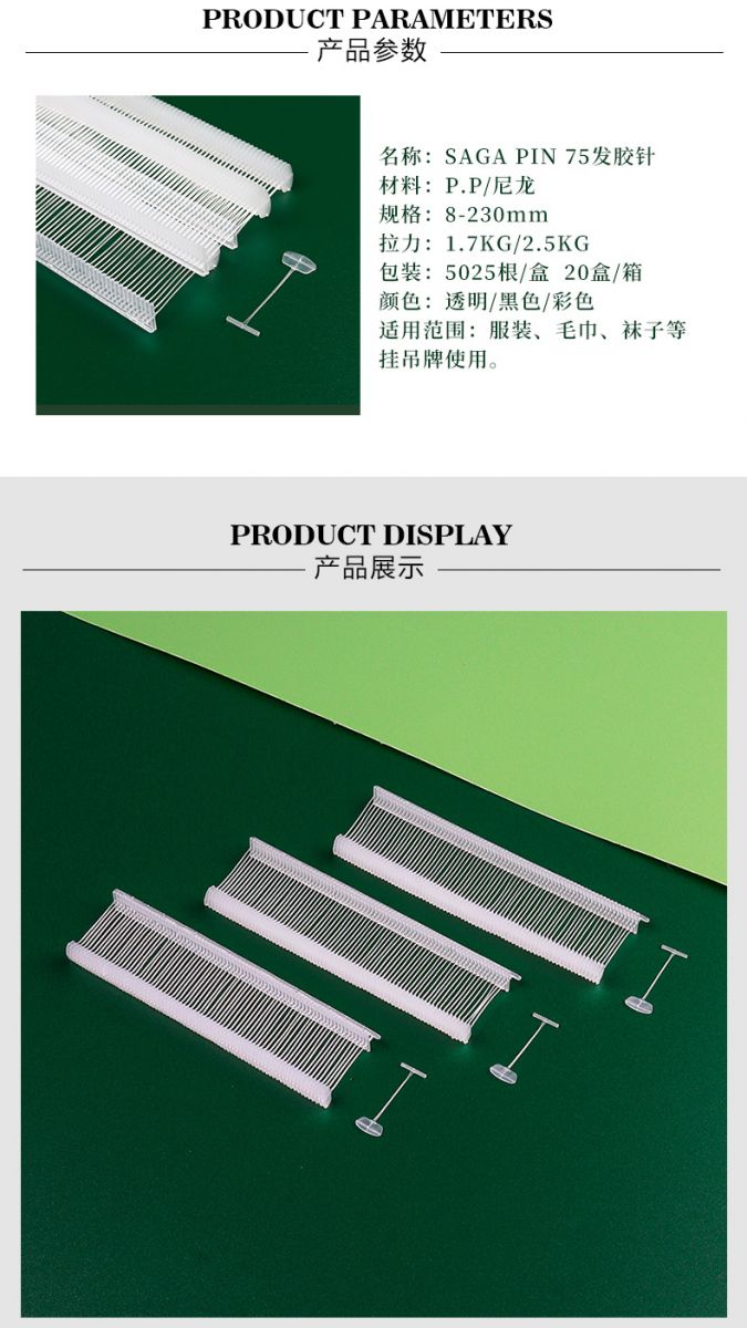 1、比50發(fā)/排膠針多25發(fā)而骨架長度更短,換膠針頻率降低。相對(duì)于精距100發(fā)/排膠針,SAGA PIN能減少操作時(shí)膠針骨架的晃動(dòng),同理降低對(duì)織物的損傷。