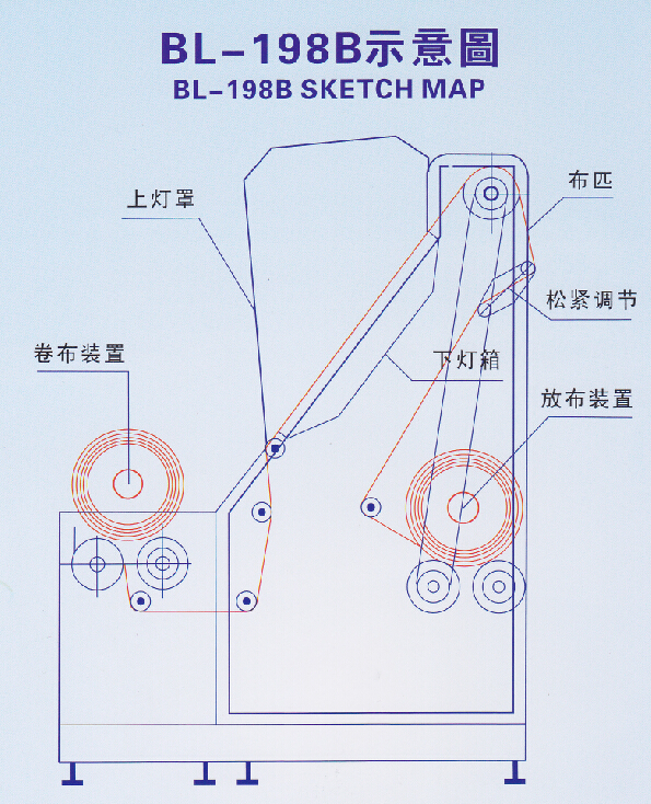 ● 配置進(jìn)口啞克力透光板、強(qiáng)勁內(nèi)外燈光、使運(yùn)行中的布料瀏覽無遺。