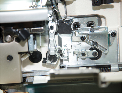 機頭部位設(shè)計了上送布牙差動調(diào)整搖桿,可方便進(jìn)行送布牙的前后送布量,同時設(shè)計了上下調(diào)整螺絲,亦能方便的對送布牙進(jìn)行上下調(diào)整,在更換面料時,易用性大大增加。