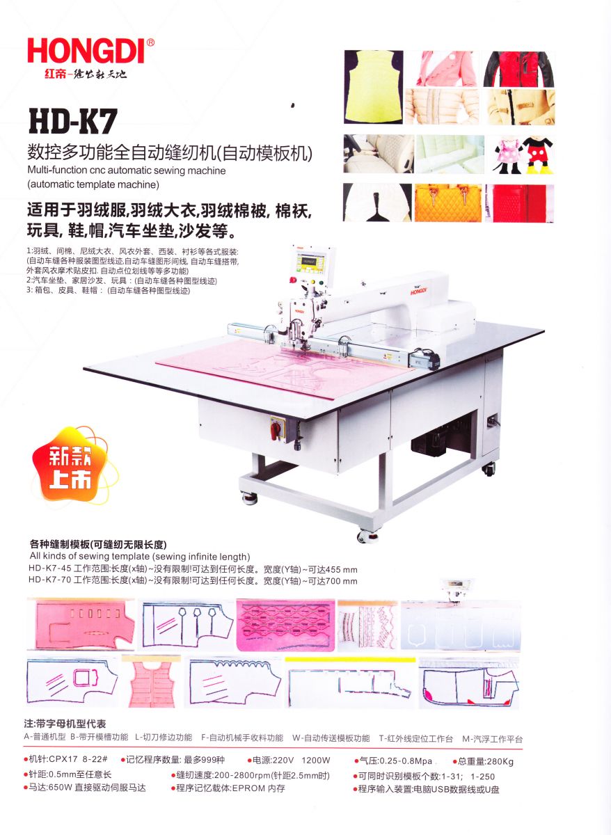 HD-K7數(shù)控多功能全自動縫紉機(自動模板機)
