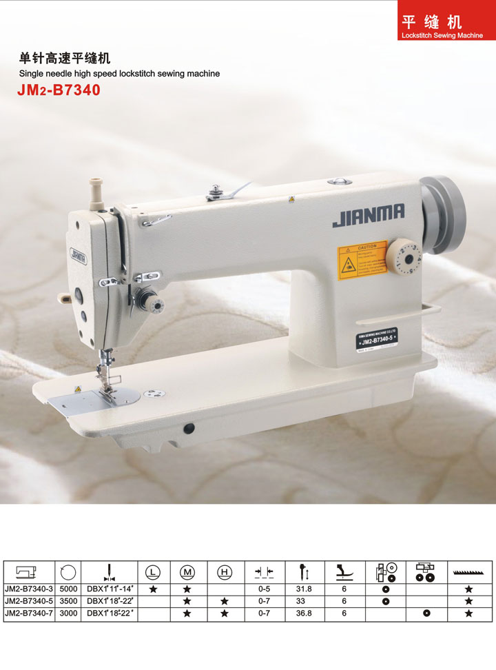JM2-7340-5、JM2-7340-7高速厚料平縫機(jī),適用于普通料及厚料牛仔布,皮革等縫料。